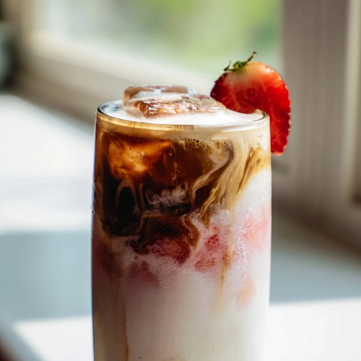 This refreshing strawberry cream cold latte combines fresh strawberry puree with cold brewed espresso and creamy milk for the perfect summer beverage. Ready in just 10 minutes, this chilled drink features sweet strawberries blended with sugar, then layered with cold milk, heavy cream, and strong coffee over ice. The result is a beautifully marbled, luscious drink that balances fruity sweetness with rich coffee notes. Top with whipped cream and fresh strawberries for an extra indulgent touch.
