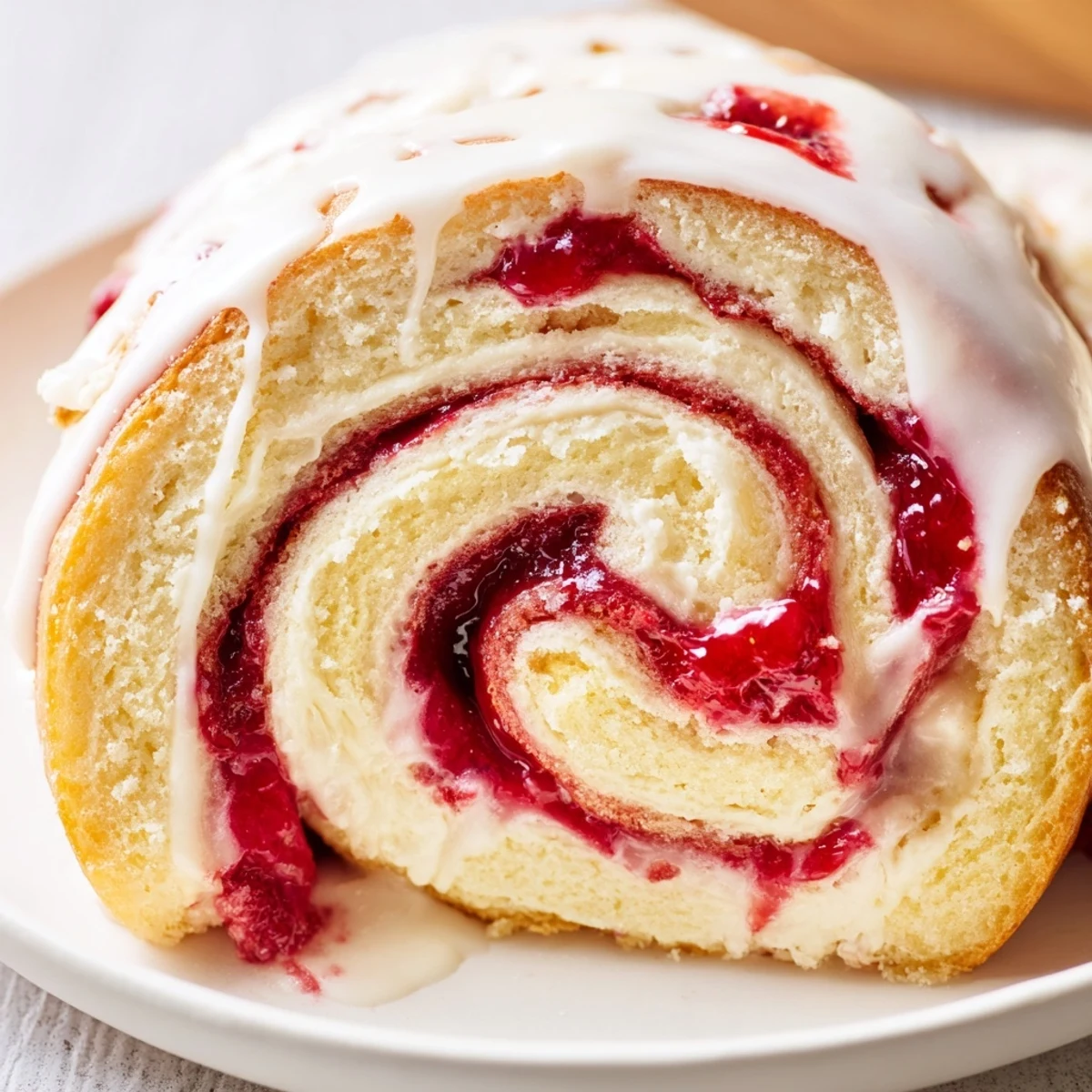 After baking until golden, a simple vanilla glaze adds the finishing touch. The result is a warm, gooey dessert that's perfect for special occasions or weekend brunch. Each bite offers tender dough, tangy cheesecake, and bright strawberry flavor.